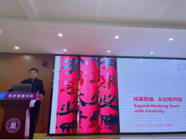 讲座伊始,李中杨教授围绕“拓展设计——从创意做起”主题展开分享,从创意在维度中递进与转换,创意在角度中寻找多元创意,创意在智慧中迸发好设计,好创意需要优秀的落地等几方面深入浅出的讲解。李中杨老师回顾了设计史上一些著名的设计,如管筒式临时帐篷、耐克高科技短跑鞋和德国合二为一啤酒等。对著名的设计创意和理念进行了剖析,如大黄鸭现象,他讲到了大黄鸭是现代时尚设计和旅游观光业相结合的成功典范。