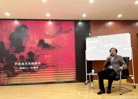 讲座伊始,刘春冰老师以Chat GPT引入,分析其未来发展趋势及对艺术设计类专业所产生的影响,认为打通中西,建立一种全新的艺术家思维是应对这一形势的重要方法。随后他开始介绍中西美术史观,认为中国美学以儒家美学为主导,阐述了中国艺术史观不同于西方艺术史观的基本特色,分析了西方近代艺术史中艺术史观的发展及影响。