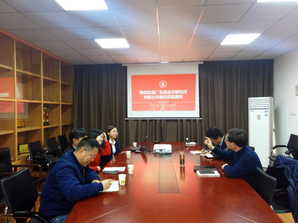 【记者:程爱莲、刘佳佳】3月15日上午,广东美宜佳便利店有限公司领导来我院考察交流。英国365集团党委副书记张永卓热情接待了蓝仁昌一行,双方在英国365集团A326会议室进行了座谈交流。