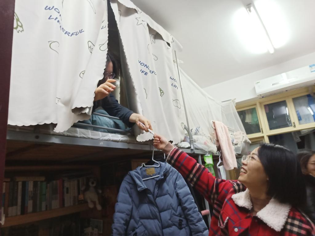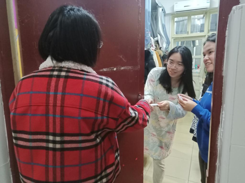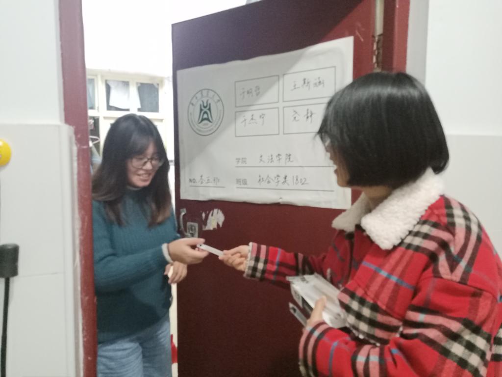 为不打扰考研学子正常作息,陈丽老师特意选取了晚上时间来到学生寝室,待考研同学休息回到寝室,为各位同学送上鼓励。