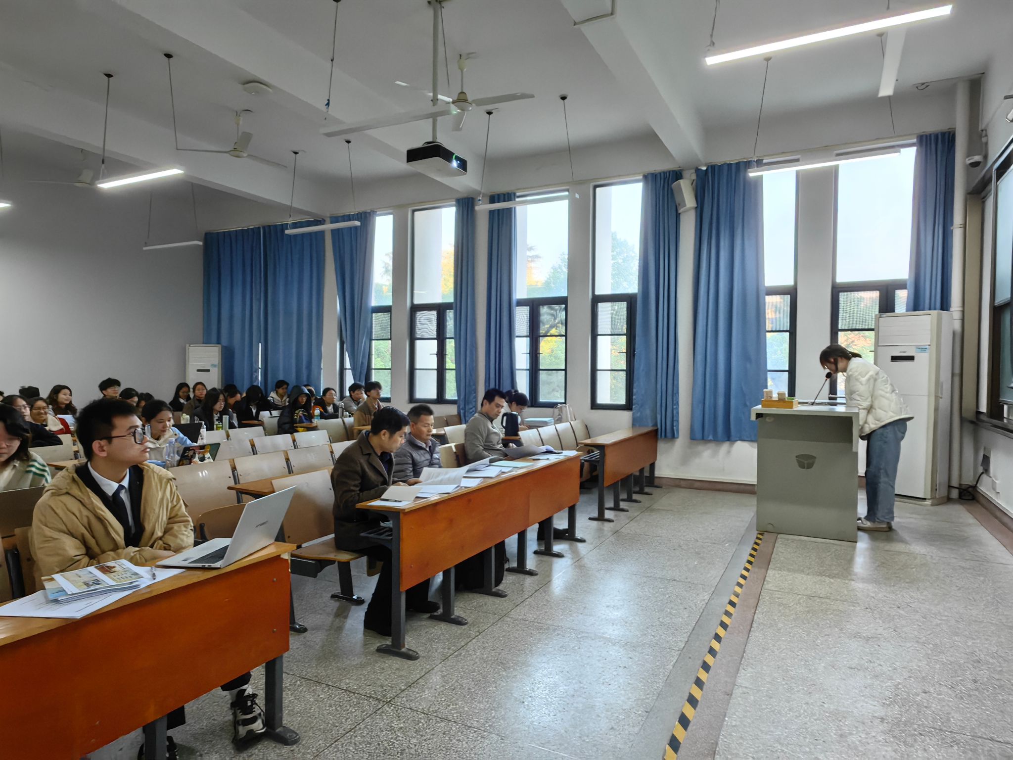 本次评审会分为PPT展示汇报和专家提问两个主要环节。64位项目负责人依次登台,详细汇报了其调研情况、主要结论及心得体会。评审老师充分肯定同学们的研究成果,从专业研究的角度指出了存在的不足之处,并对后续研究提出了建设性意见。