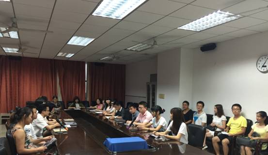 图为李欢、张业、洪丹、刘文华、沈大力等同学与师弟师妹座谈现场