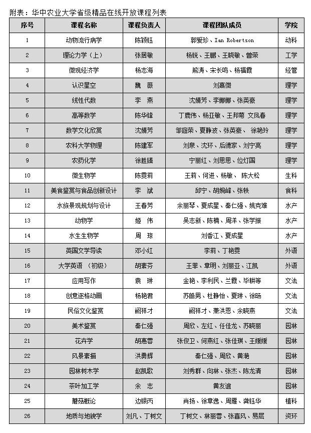近日,湖北省教育厅公布首批104门省级本科精品在线开放课程认定结果,我院袁琳老师主持的《应用写作》、杨艳君老师主持的《创意逐格动画》、阙祥才老师主持的《民俗文化鉴赏》等三门课程入选。