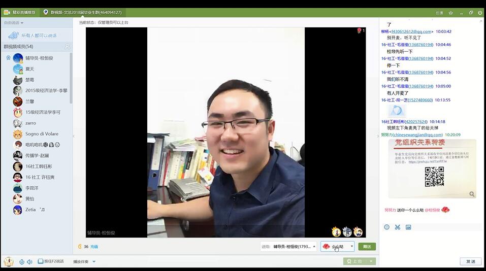 (通讯员 徐张军)5月19日上午,一场别开生面的毕业生毕业派遣政策宣讲会顺利举办,我院研究生辅导员桂恒俊老师开通QQ视频网络直播为所有的应届毕业生详细介绍研究生毕业派遣政策。