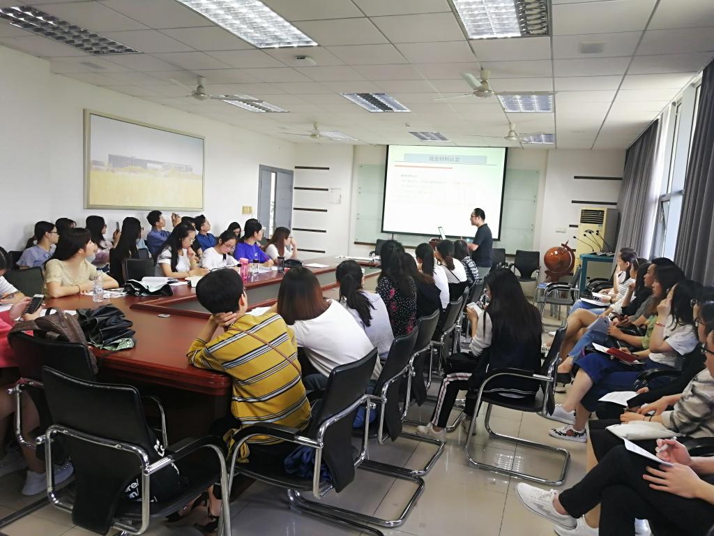 教务老师朱雪萍从复制比检测、论文盲审、答辩程序等方面为毕业生介绍了学位答辩相关事宜。“学院很早就实施了毕业论文全盲评,今年更是在论文盲审环节引入了‘第三方送审平台’,进一步严格和规范了论文评审程序,同学们要独立思考,认真撰写毕业论文,避免学术不端行为,为研究生阶段交上一份满意的答卷。”