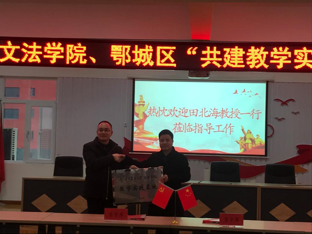 3月9日下午,我院与鄂城区组织部举行了共建教学实践基地及人文社科观测点签约授牌仪式,院长田北海教授,鄂州市委常委、宣传部部长朱其敏代表双方授牌。