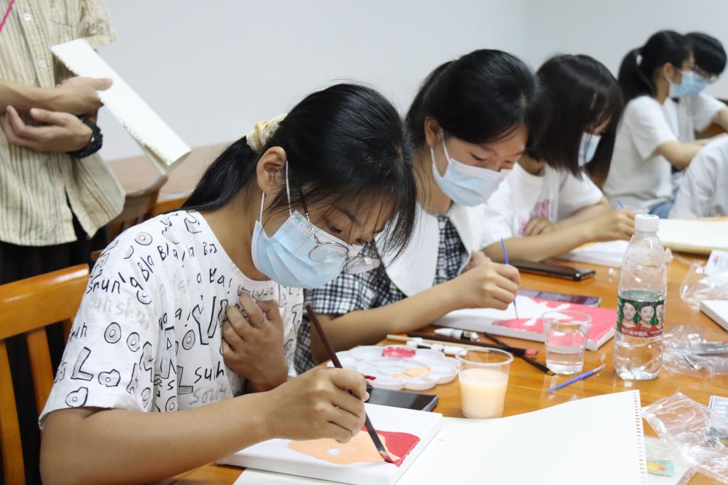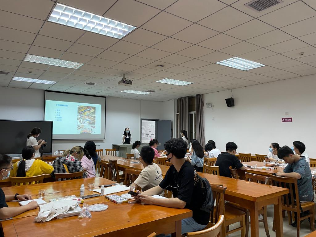 活动伊始学院视觉传达设计系教师杜静怡向同学们介绍了绘画常用的颜料以及简单的绘画技巧,带领同学们认识手中的手绘用具和材料,帮助不太熟悉手绘方法的同学熟悉手绘的方法。