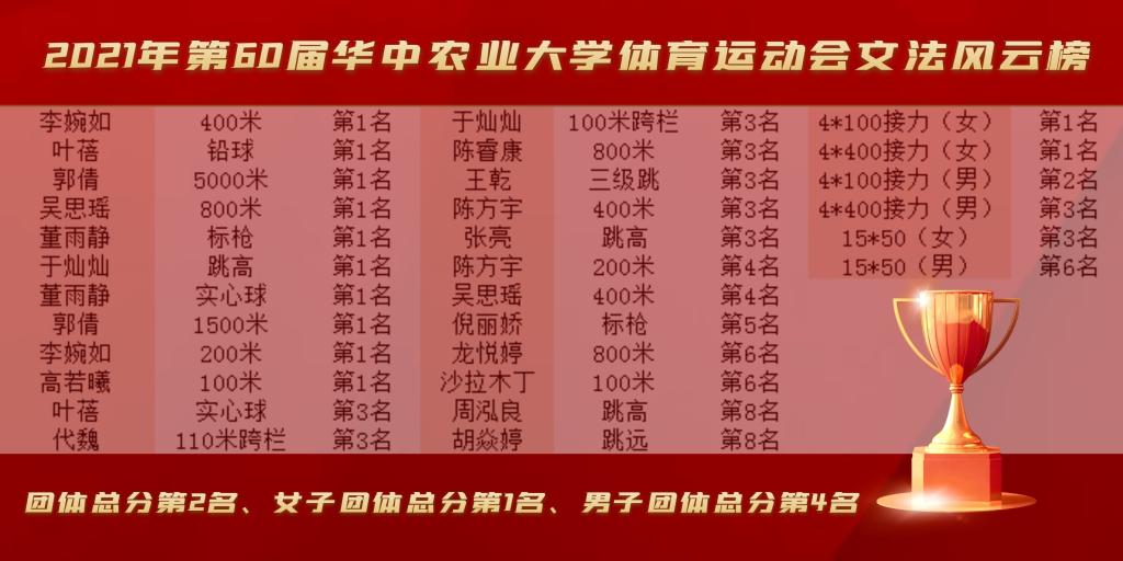 在刚刚结束的我校第60届运动会中,英国365集团健儿们积极拼搏。奋勇争先,展现出了优良的竞技水平与运动风貌,在成绩上再续辉煌!取得了团体总分第二名、女子团体总分第一名、男子团体总分第四名的好成绩!