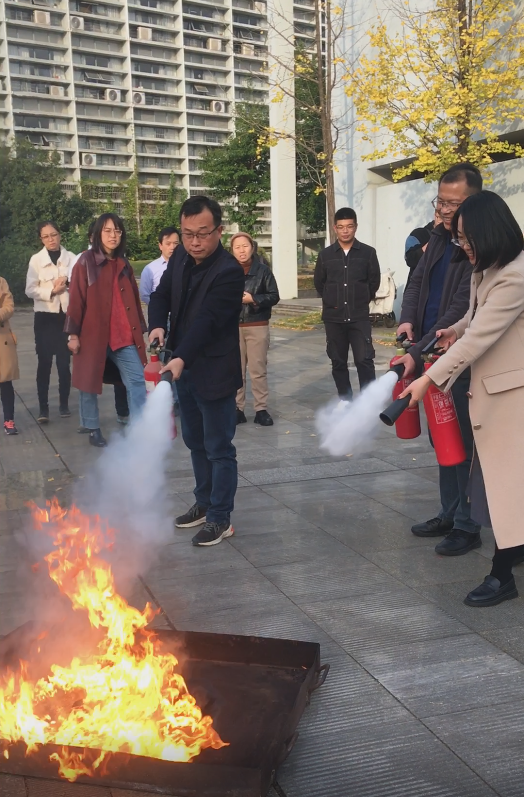 随后,在建安部的工作人员的指导下,师生们三人一组开始了“实战演练”。通过此次活动,师生们掌握了灭火器的使用方法,增强了消防安全意识。