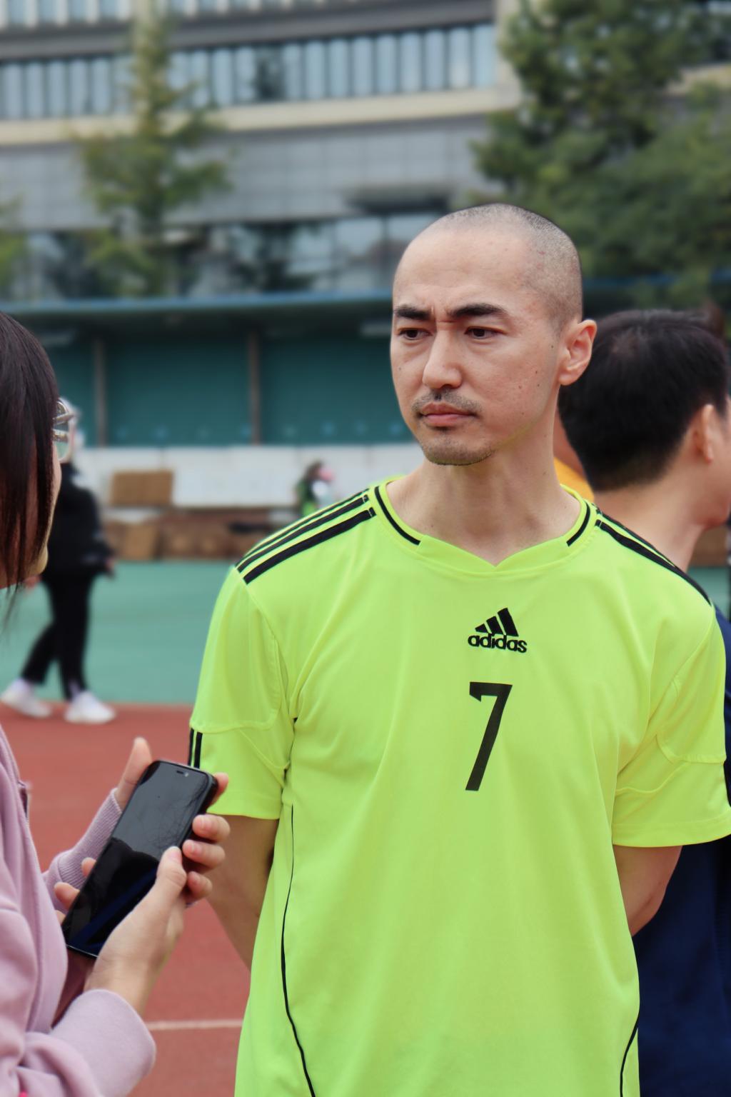 杨艳君老师参加了男子100米项目,并取得了预赛第五名,决赛第六名的成绩,谈及参加的感受,他表示:“运动场上出现越来越多年轻的脸庞,教职工队伍不断注入新鲜血液,尽管比起上次参加成绩稍有落后,但还是在过程中感受到了体育运动的魅力!”