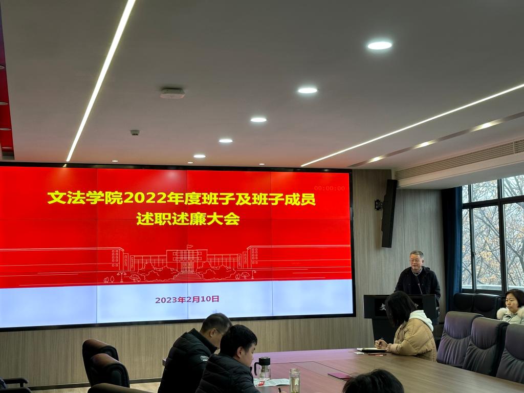 会议开始,学院党委书记瞿明勇代表学院班子进行述职,他从党建与思想政治工作、人才培养、学位与研究生教育、科学研究与社会服务、学科建设与人事人才工作、国际合作与交流、美丽文法建设等方面对学院过去一年的工作进行了全面回顾,对存在的不足进行了剖析,随后班子成员田北海、周治瑜、王德强、孙站成、李祖佩逐一述职述廉。