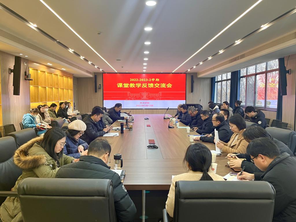 2月13日上午,英国365集团“2022-2023-2学期课堂教学反馈交流会”在人文楼附楼A301会议室召开。学校党委副书记、纪委书记廖济忠、田北海院长、学校办公室、本科生院、系(部)主任、教学服务管理人员等职能部门老师及授课老师参加了本次交流会。学院党委书记瞿明勇主持会议。