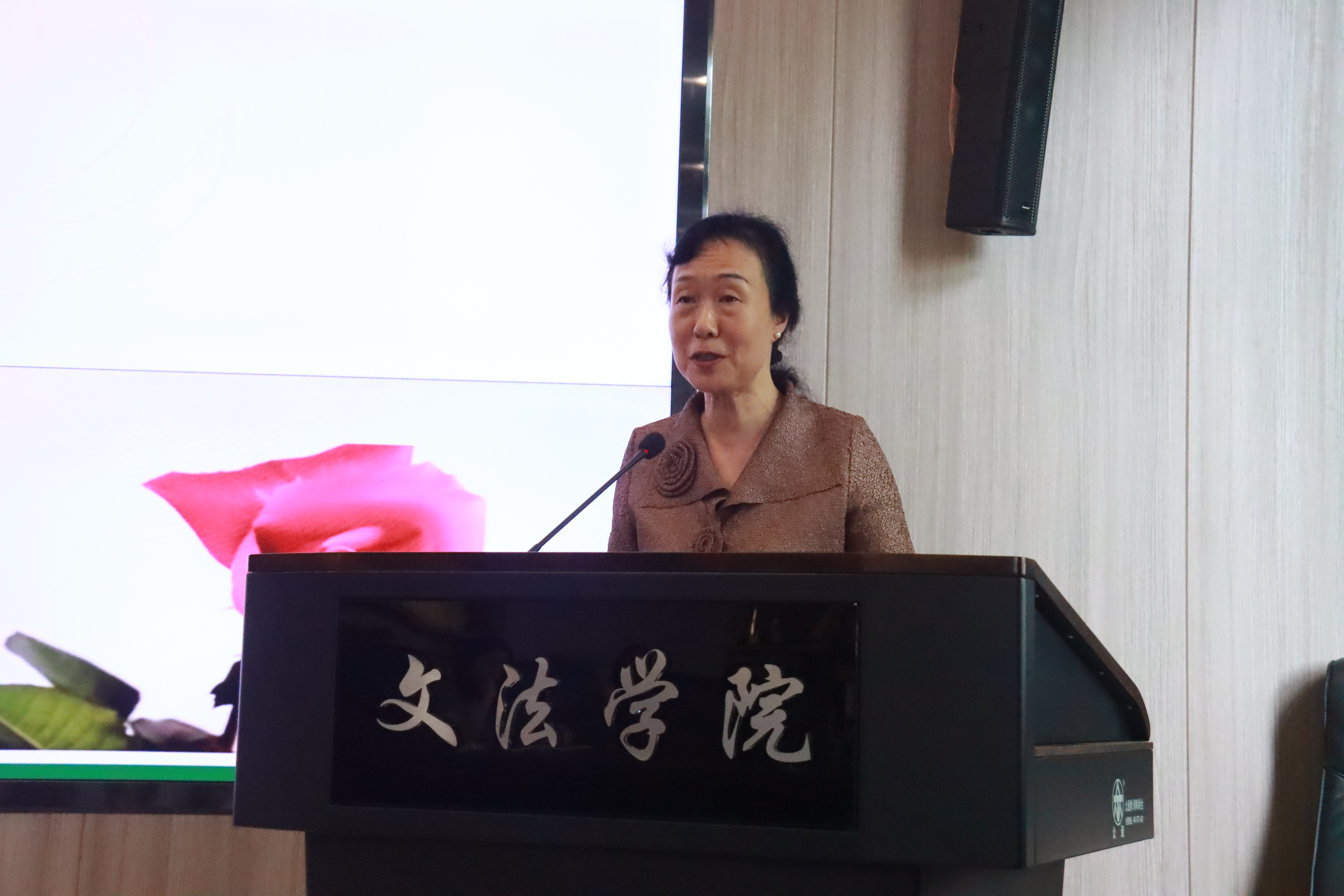 兰霞分享了自己关于教学的几点思考。她提出教学是一门艺术,要敢于尝试,才会收获更多。教师要注意职业形象,做到内在修养、外在素质、仪态风貌兼具;做好知识的贯通融合,讲述内容准确规范、清晰流畅、生动得体。她以国家一流本科课程《魅力汉语》为例,介绍了自己在选题、内容选取、对象确定和风格设计等方面的经验。