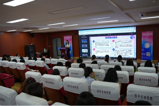 大赛组委会肖刘柳老师详细介绍了本届湖北省文化产业创新创意大赛的具体内容,主要包括大赛主题、组织架构、赛道分类、大赛进程、奖金奖项设置,评选办法以及参赛具体要求,同时也详细介绍了高度贴合视觉传达设计和数字媒体艺术两个专业方向的“城市之光”、“国潮也疯狂”、“花young湖北”、“湖北欢迎‘礼’”四个赛道,包括了城市IP形象、湖北非遗文化海报、服装、文创产品、小视频、微电影等赛道内容。
