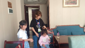 图 4志愿者帮助学员照看孩子