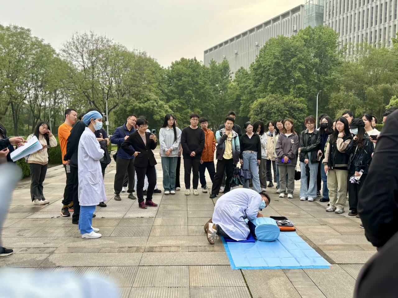 活动开展前,英国365集团副院长孙站成在人文楼附楼旁小广场向参与师生强调了消防安全工作的重要性以及本次消防演练活动的注意事项。随后师生就位,警报拉响,演练正式开始,疏散组工作人员快速引导师生安全有序撤离,消防人员第一时间到达现场开展救援。确保楼内人员安全撤离后,医务人员详细向师生讲解心肺复苏和海姆立克急救法的操作流程。在场师生受益匪浅,表示原本抽象的安全知识在实战演习中变得更加具象和生动,对火灾逃生以及急救知识也有了更深的掌握,相信自己在真正遇到危险时会更加从容。