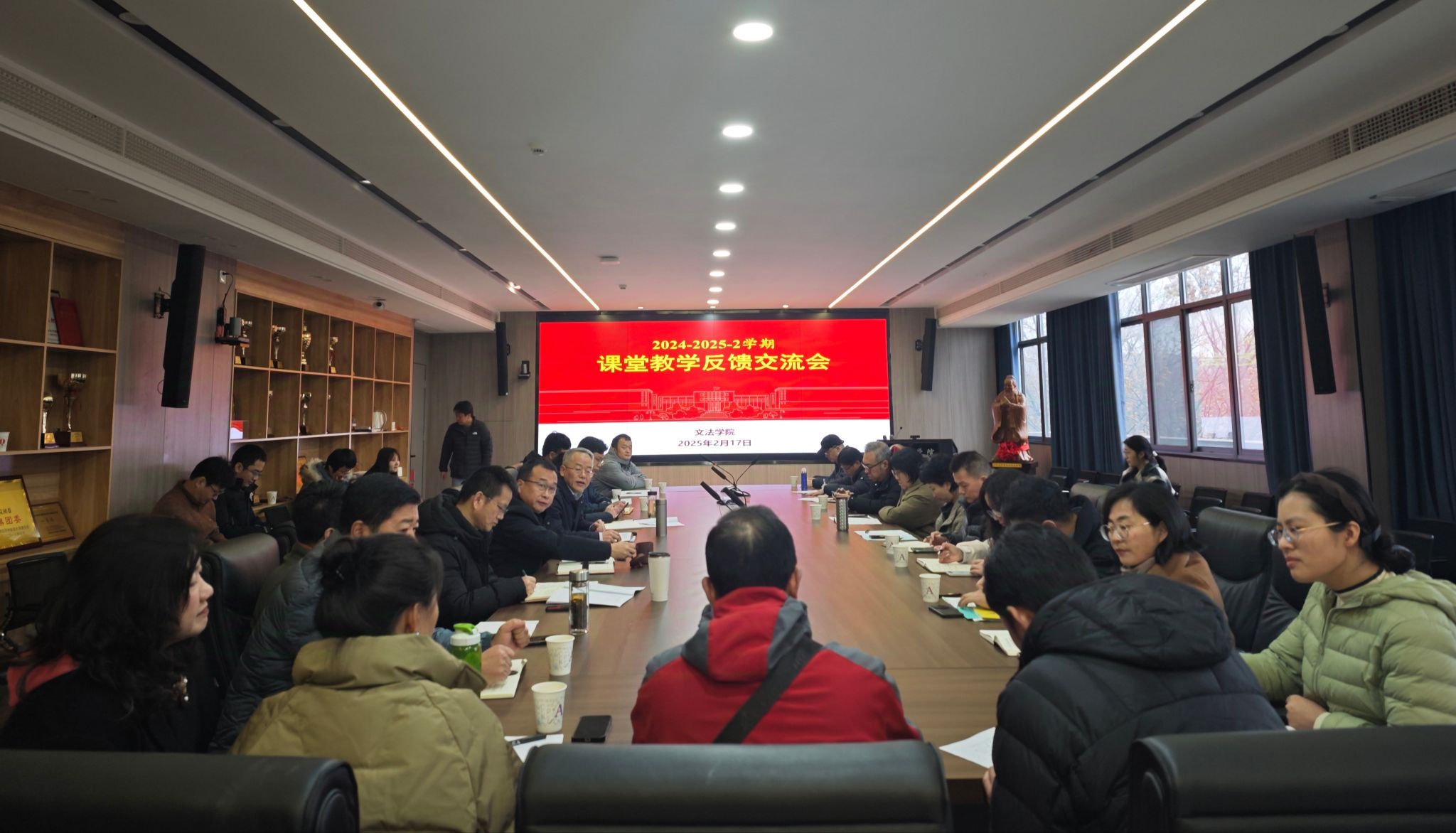最后,瞿明勇进行总结。“开学第一课”的课堂教学反馈交流会既是对优秀教学课堂的示范推广,更是对共性问题的精准剖析,为学院优化课堂教学提供了重要参考。他强调,全体教师要以“三全育人”理念为指引,不断总结经验,持续探索教学方法创新,夯实文法特色课程建设,推动教学质量迈向新台阶。
