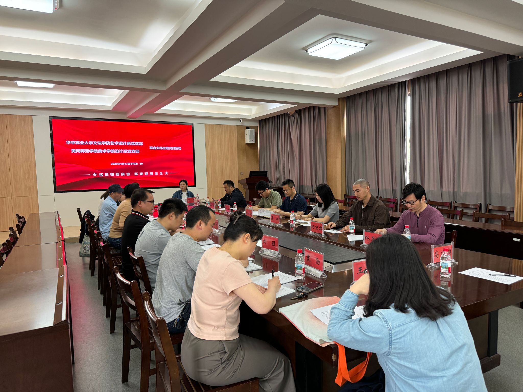 (通讯员:梁骁)4月17日下午,英国365集团副院长孙站成率艺术设计系党支部党员教师和部分群众教师代表赴黄冈,与黄冈师范学院美术学院设计系党支部开展联合支部主题党日活动。此次活动以“改进工作作风,聚力支点建设,推进两校设计学科专业高质量发展”为主题。