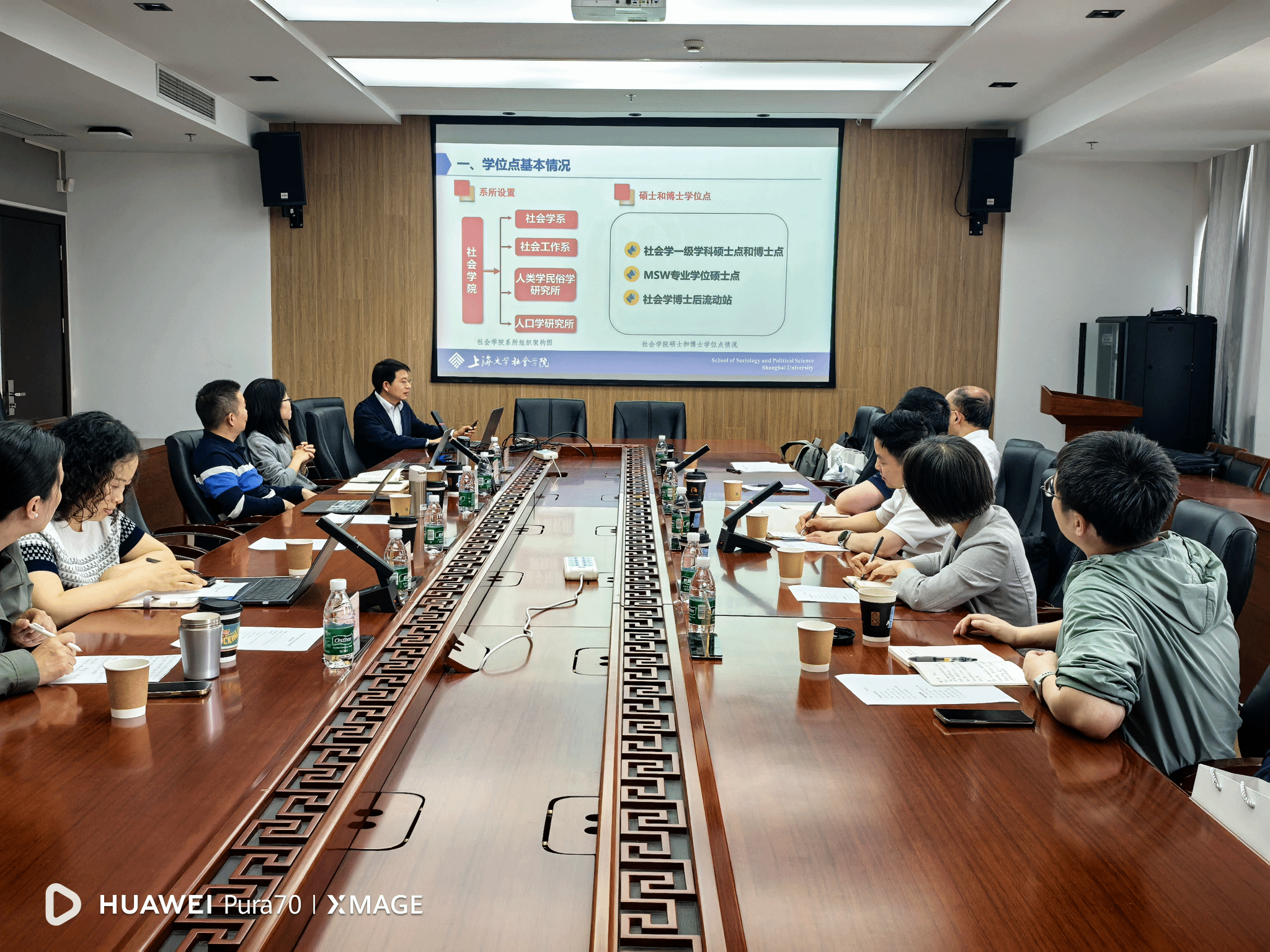 在上海大学,社会学院党委书记、代院长杨锃教授介绍了社会学院发展概况及社会学学科建设情况,社会学系主任肖瑛教授、社会工作系副主任阳芳教授分别介绍了社会学、社会工作专业与学科建设的主要做法与经验,人文社科处处长黄晓春教授、社会学院副院长纪莺莺教授和社会学院副书记兼副院长张乃琴老师分享了社会学学科在科学研究和学生工作等方面的做法与体会。