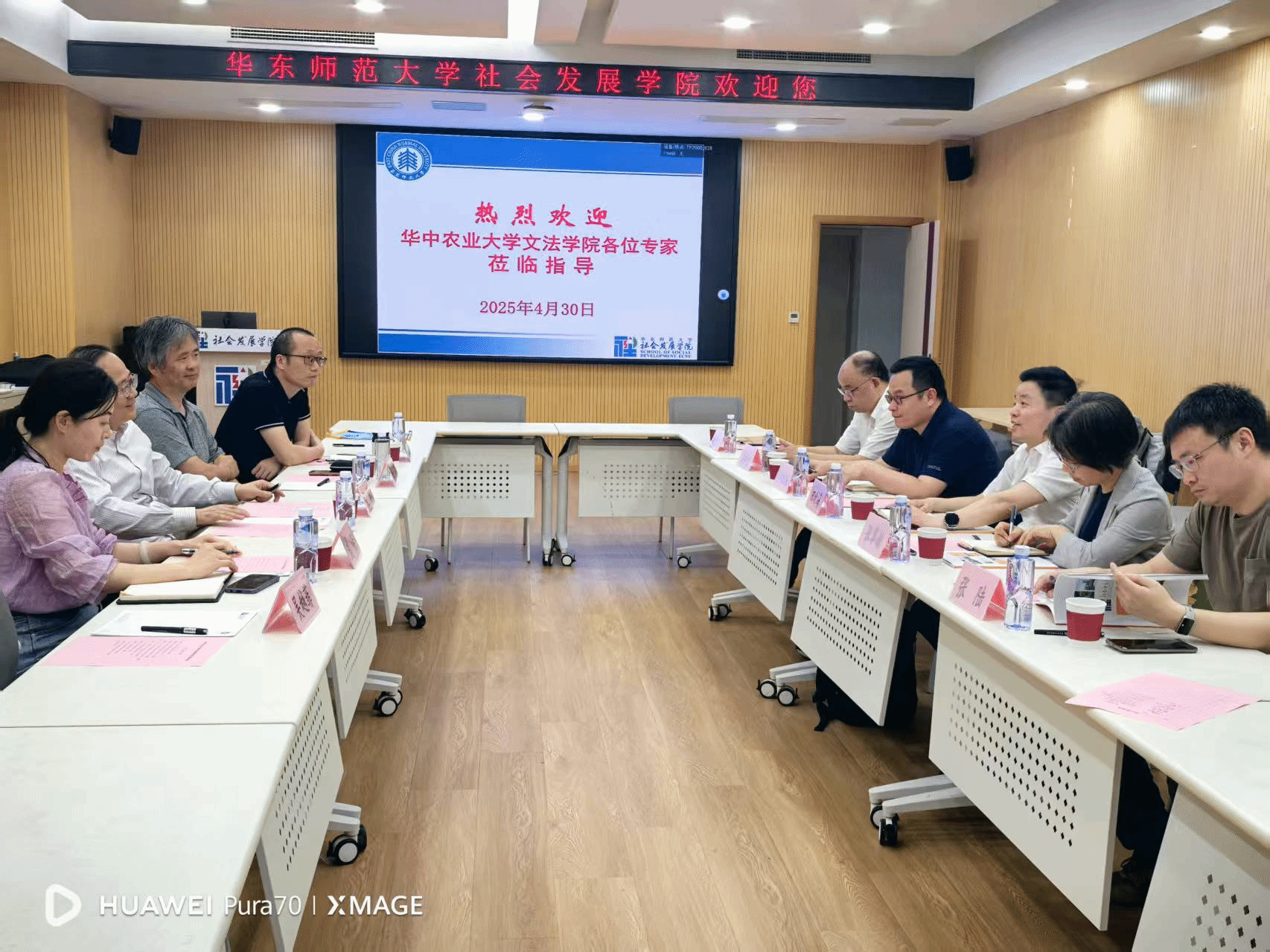 在华东师范大学,社会发展学院院长文军教授介绍了学院与学科的历史和发展情况,副院长黄晨熹教授、副院长姚泽麟教授、副书记庞荣老师、社会学系副主任吴越菲副教授参与调研座谈。双方就学院规划、人工智能时代的学科发展转型、学科评估、博士学位建设、教师引进、人才培养、课程设置等问题展开了深入交流,文军院长向调研宣讲团队颁发了学院纪念锦旗。