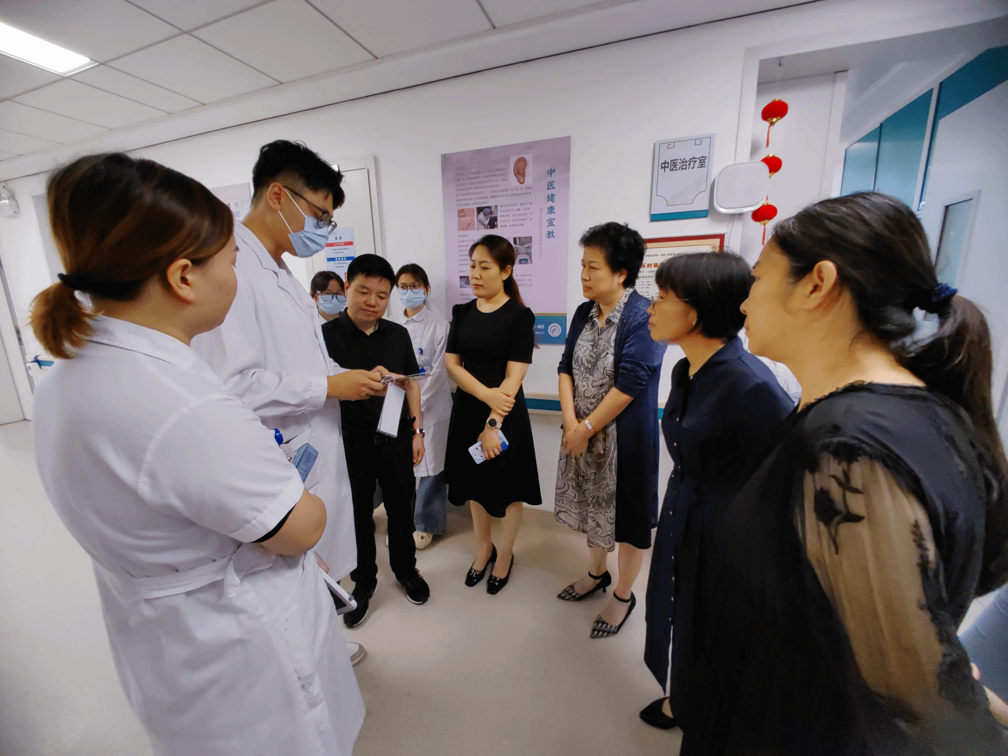 仪式前,我院教师在湖北省中西医结合医院领导陪同下参观了肿瘤血液科一病区与老年病科一病区。肿瘤血液科一病区展示了智能化患者探访系统,直观呈现了“科技赋能人文关怀”的创新实践,让技术服务于患者情感需求与就医体验;老年病科一病区则重点呈现了医务社工服务与中医“整体观”“治未病”理念的深度融合,从服务场景到理念落地,全方位彰显了“中西协同、心身社兼顾”的特色服务优势。