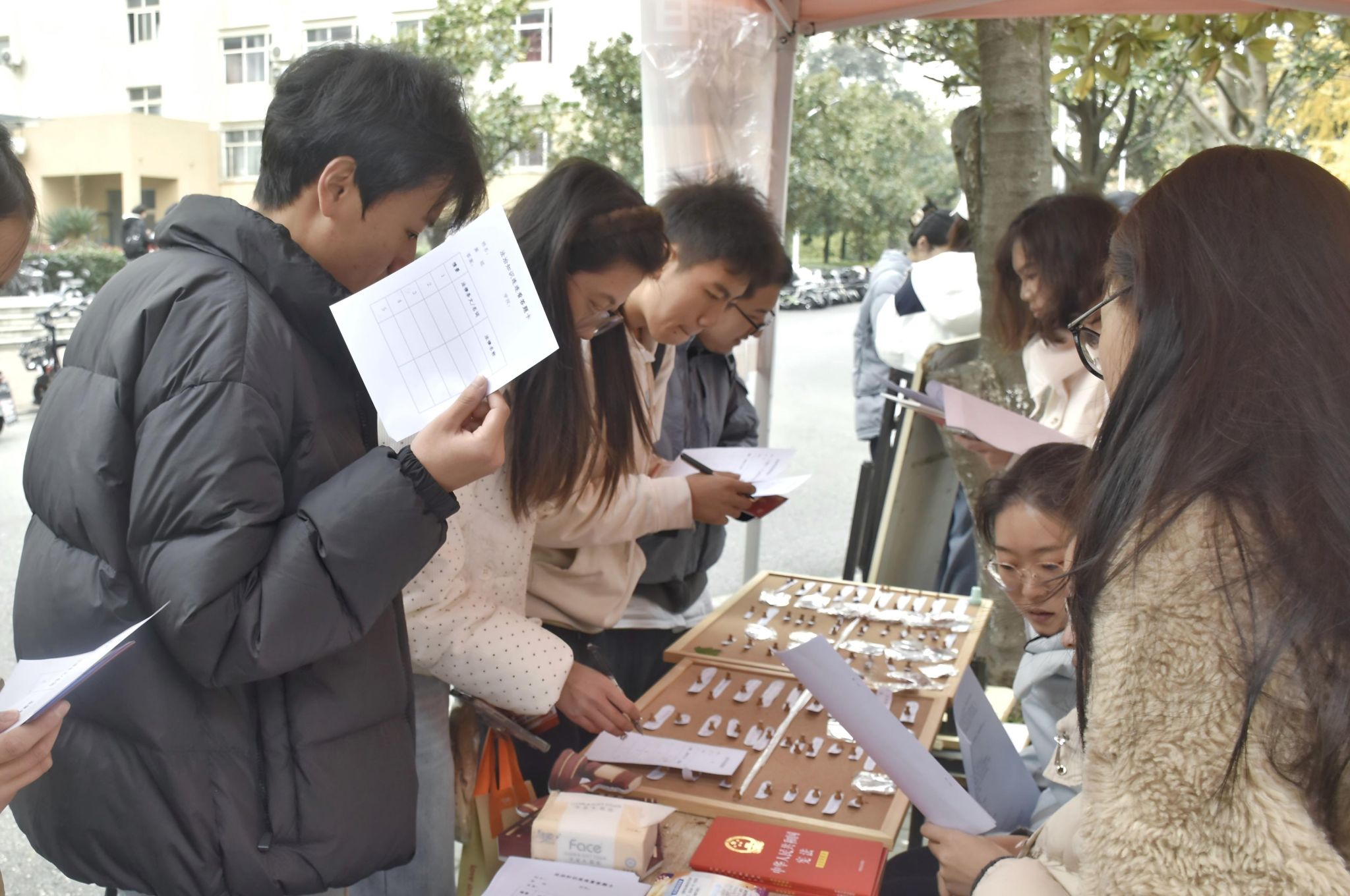 12月4日中午,法治游园会设置四大趣味关卡,围绕宪法精神、电信网络诈骗、劳动法等主题开展,为师生筑牢安全防骗“防火墙”。整场游园会寓教于乐,让原本严肃的法律知识变得生动易懂,有效激发了师生学法热情。下午,法学教工党支部联合法学研究生党支部、法学本科生第一党支部成员,在东社区开展宪法日普法宣讲和法律咨询活动。活动现场,法学教师汤建华、张文斐、周志、张弛聚焦老年人权益保障、消费者维权等民生关切领域,带领学生志愿者们用通俗直白的语言拆解专业法律条文,让居民切实感受到宪法与日常生活的紧密联系,认识到宪法对维护自身权益的重要作用。