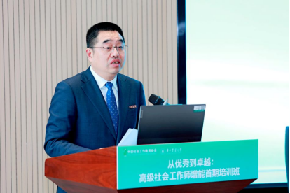 陆建义在致辞中对本次培训班的举办表示热烈的祝贺。他谈到,近年来,社工机构发展面临着巨大挑战,未来需进一步推动服务向专业化、市场化、品牌化发展,高级社工师应发挥引领作用。他期待与各方加强协作,共同解决社会治理疑难问题。