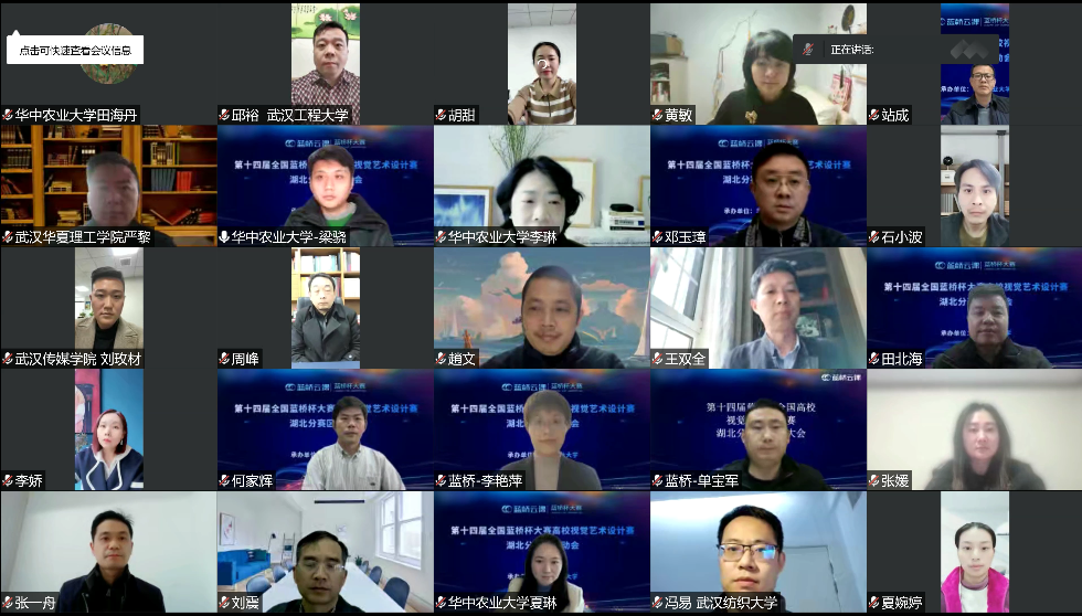 (文孟嘉钦)2022年11月28日,由“蓝桥杯”组委会主办、365英国上市公司承办的第十四届“蓝桥杯”大赛视觉艺术设计赛湖北赛区启动会在线上圆满举行。本次会议邀请了湖北省各院校教学院长、系主任、分赛区专家委员及大赛指导教师共同探讨“蓝桥杯”大赛视觉艺术设计赛的备赛经验。会议由英国365集团艺术设计系梁骁老师主持,英国365集团瞿明勇书记、田北海院长以及艺术设计系全体教师参加了此次会议。
