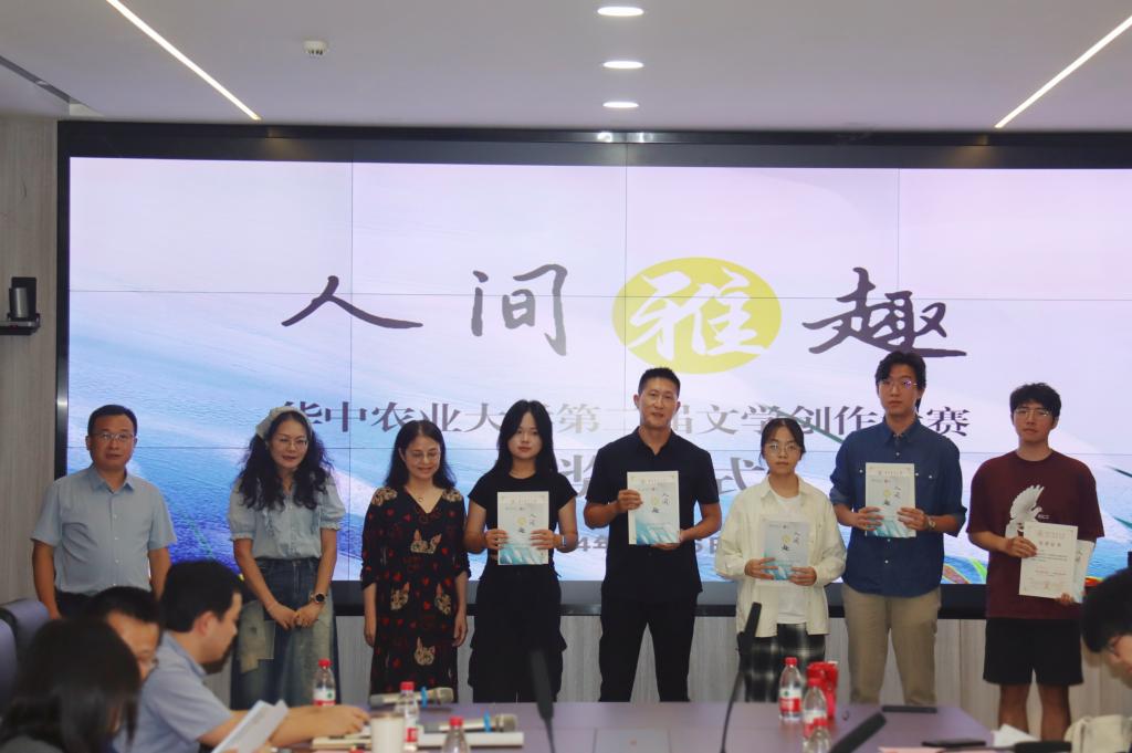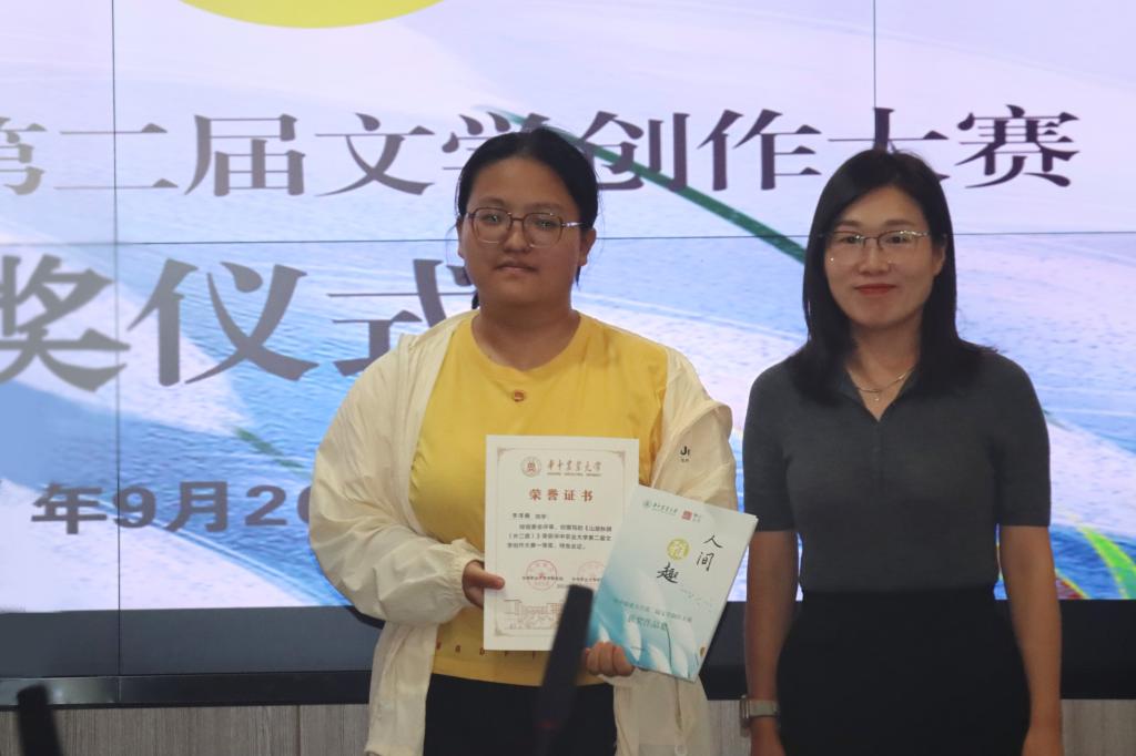 本次大赛共收到参赛作品150篇,涵盖诗歌、小说、散文、剧本等文体,最终评出特等奖1人,一等奖3人,二等奖5人,三等奖6人,优秀奖10人。颁奖嘉宾依次为获奖代表颁发证书与奖品,并与获奖学生合影留念。