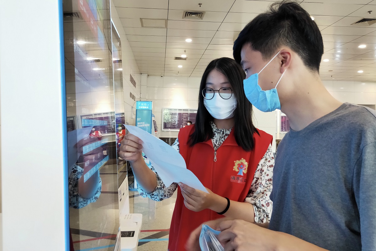 7月27日至8月2日,倪丽娇同学在德清清禾公益组织的领导下,开展了为期七天的助医活动。本次公益活动旨在帮助德清县就医群众顺利使用医院最新引进的,集挂号、缴费、办卡、预约等功能为一体的自助服务机,以及为群众指引路线、进行心理疏导等。