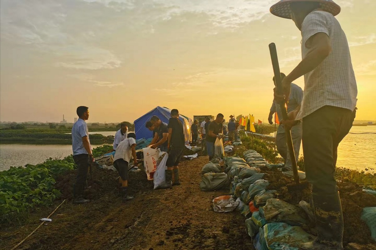 有了第一次防汛的经验,在后来多次跟随书记到周边重点防汛地段巡查时,李雨阳对防汛工作逐渐熟悉。除了要察看各防守地段险工险段处置、防汛物资筹备等方面的情况外,还要详细听取和记录各镇、村相关负责人关于水情动态以及巡堤查险等情况的汇报。在此过程中,李雨阳采访到了一对防汛“父子兵”。父亲朱放军在黄梅法院司法警察岗位上坚守24年,参加过1998年、2016年等多次抗洪抢险行动。而在同一驻点,朱放军的儿子朱萸同样在防汛一线,并且已经近一个月未归家。虽然两人在同地驻守,碰面的机会少之又少,碰面时,朱放军总是不忘向儿子传授自己多次参加抗洪抢险工作的经验,交谈的最多的也是如何做好防汛工作。