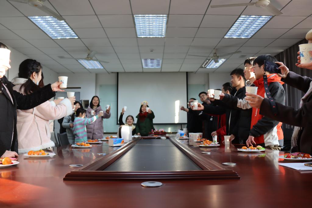 活动第一阶段为“齐心协力 绳聚你我”趣味拔河活动,一声哨响,中线两侧的师生混合队热力开拔,几个来回下来师生大汗淋漓,欢乐开怀。稍作调整后,进入了第二阶段“师生融乐 悦游狮山”徒步活动,师生沿着试验田基地一路欢声笑语,一边欣赏自然风光,一边交流学习生活,氛围融洽。徒步返回学院后,301 会议室的蛋糕等候着大家,一场师生集体生日会温情上演,社会学系吴娅丹老师、学院办公室朱晓老师在师生的生日歌中许下了新年心愿。