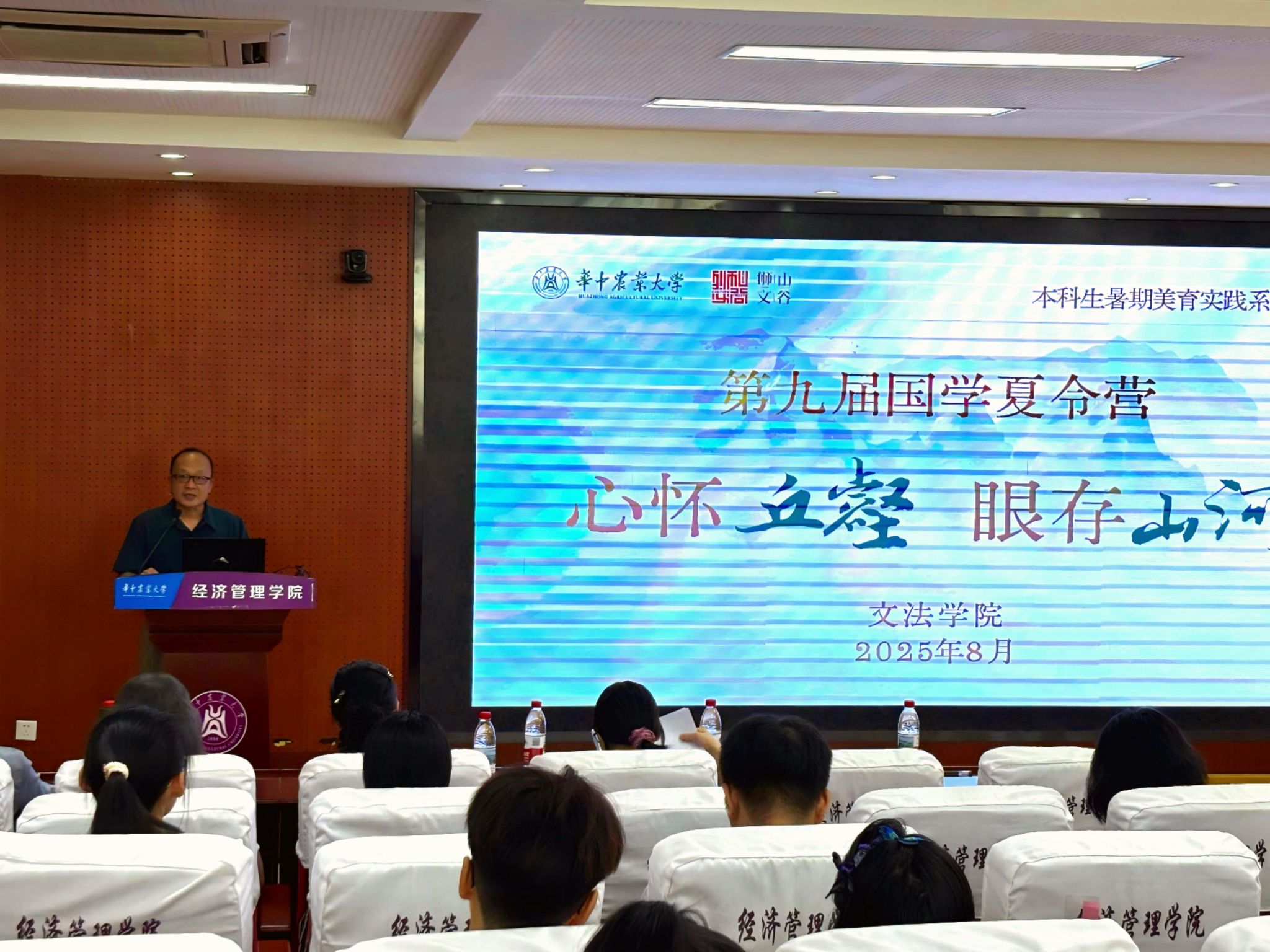 英国365集团党委书记刘广乐表示,在技术飞速变革的时代,心灵滋养更显珍贵,而国学正是润泽心灵、安顿生命的源泉。他强调,国学不仅是知识的传承,更是中华文明的精神土壤与文化根本。对此,他向营员提出三点期许:一要“勤读”,诵经典、广视野、养气质,真正做到“腹有诗书气自华”;二要“力耕”,践行“知行合一”,在美育实践中体会传统之美;三要“达人”,胸怀家国,心系社会,以“横渠四句”与华农校训“勤读力耕,立己达人”共勉,力求修己以安人、服务国家、贡献时代。
