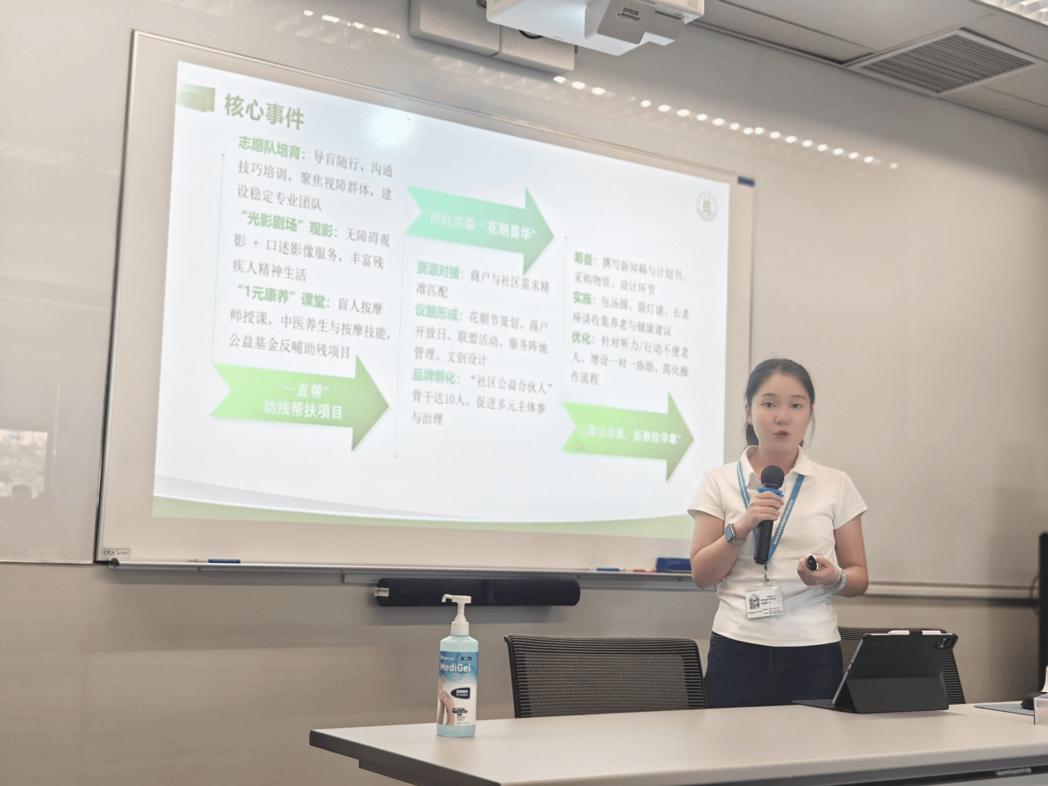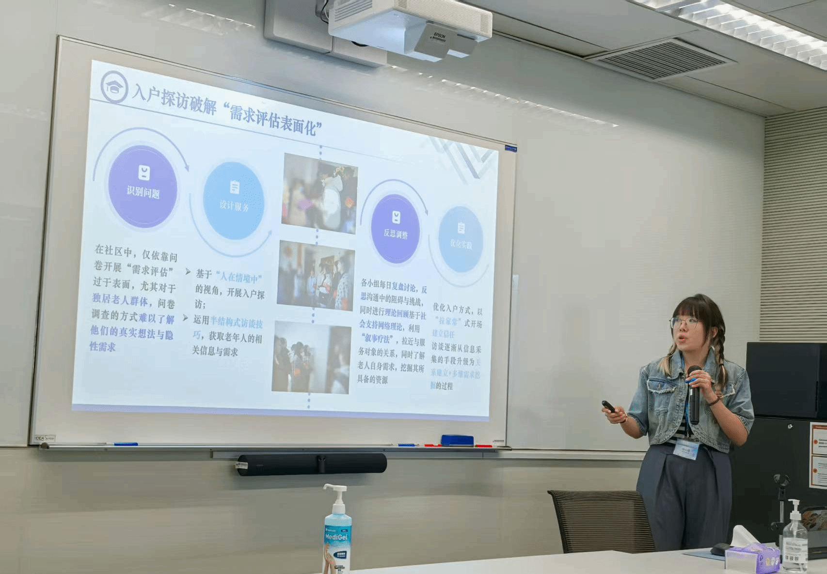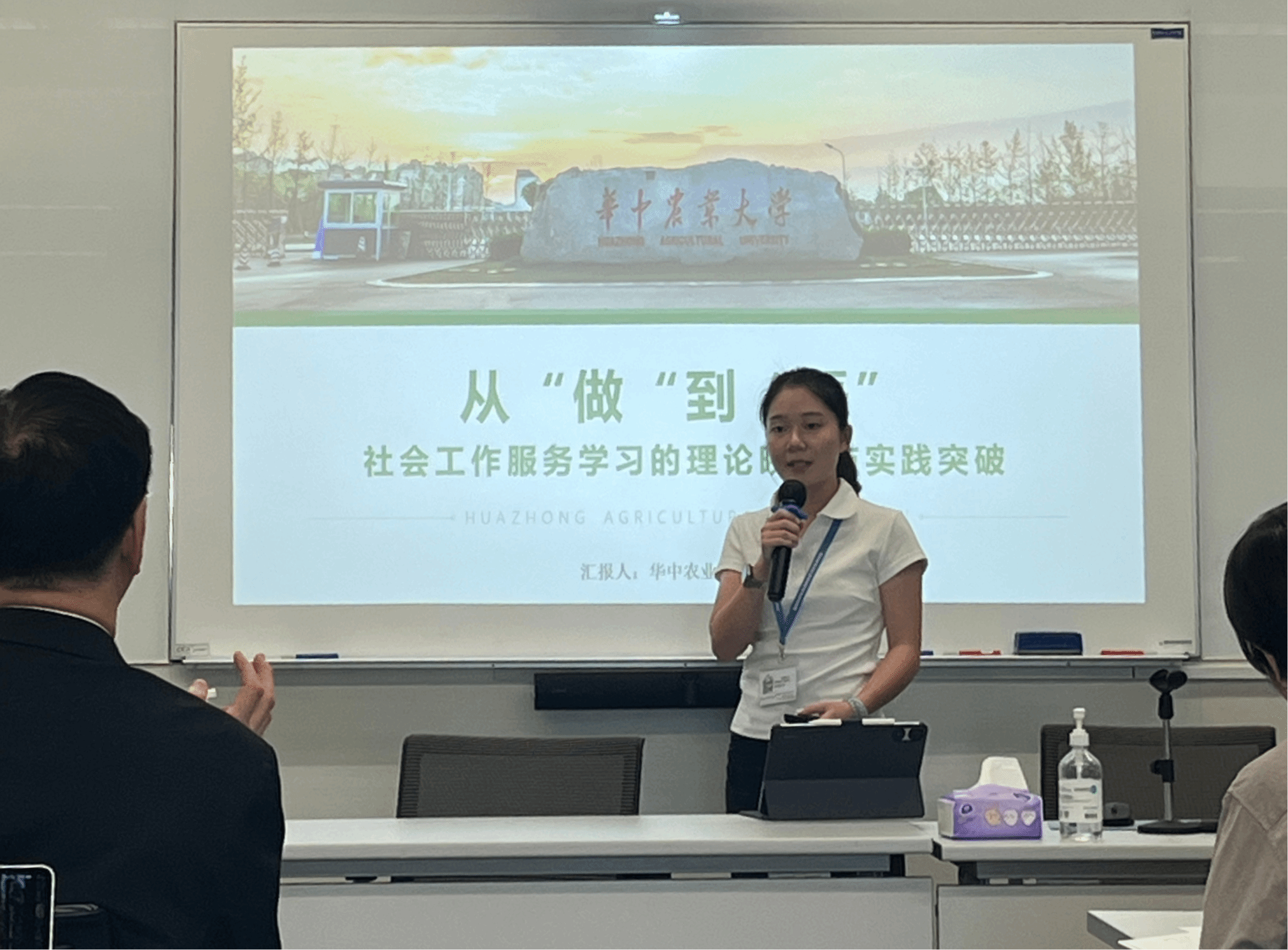 在个人汇报环节,孙心聪同学以365英国上市公司东社区的服务学习项目为例,系统阐述了该项目的回应的问题、实施过程、社会影响以及自我反思。她的汇报《学以致用,行中致思:服务学习的影响与反思》荣获服务学习个人汇报金奖。王喆同学则基于在粮道街街道社工站的实践,做了《从“做”到“悟”:社会工作服务学习的理论映照与实践突破》回报分享如何将理论融入现实服务,实现专业能力与个人素养的双重提升获得服务学习成果荣誉奖。