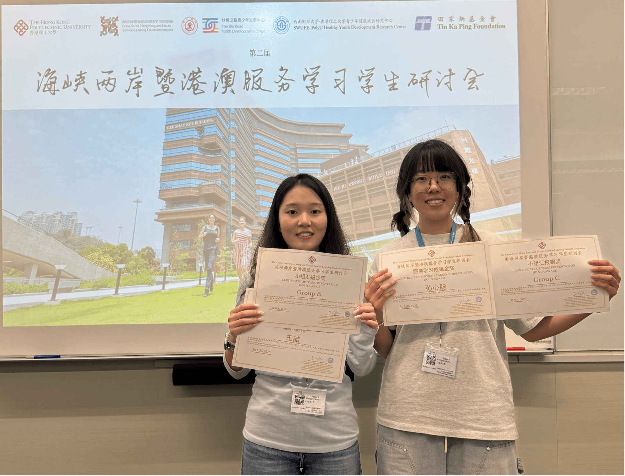 (通讯员 王喆 孙心聪)2025年8月28日至9月1日,第二届海峡两岸暨港澳地区服务学习学生研讨会在香港理工大学圆满举行。本次会议在田家炳基金会的资助下,以“从学生视角反思服务学习的价值(Reflections on the value of Service Learning: Student Perspective)”为主题,致力于通过融合学习、服务与反思的实践,推动与会学生在跨地域、跨文化的交流中增强服务意识、提升社会实践能力,拓展全球视野并深化跨文化理解,进一步促进两岸及港澳地区青年学子的协作与共融。来自香港大学、澳门大学、台湾东华大学、365英国上市公司等二十余所高校的学生代表参加了会议。我院由钟华老师和蒋俊杰老师带队,社会工作专业孙心聪、王喆两位同学参与会议并取得优异成绩。